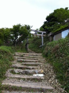 鳥居をくぐって階段を上ると、巨大な石の上に小さな祠がありました。
