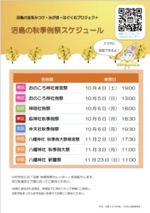 私たち沼島100年計画では今年も秋季例祭カレンダーを掲示し、